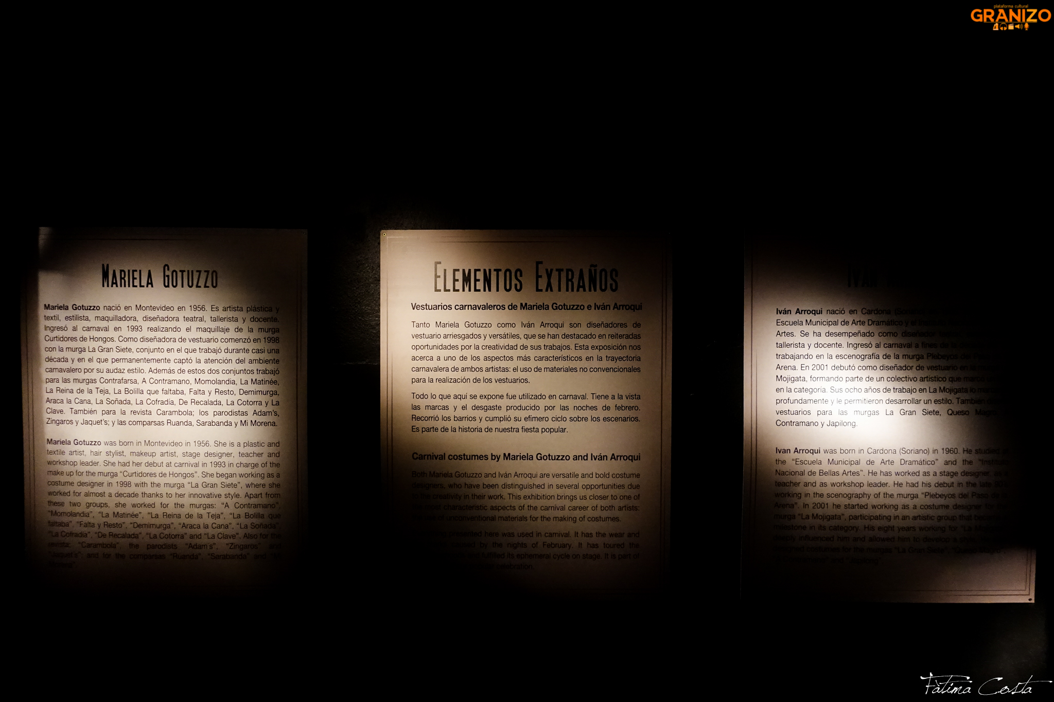 El guion del museo se plantea desde dos discursos en sectores diferenciados: el salón del traje con una muestra permanente y la historia del Carnaval «que está fija también, se puede retocar, pero en definitiva es lo que se muestra ahí», explica el director. Además, hay exposiciones temporarias que surgen de las investigaciones que el equipo del Museo lleva a cabo. «Las líneas de investigación son abiertas y se generan en función de exposiciones concretas». Por ejemplo, cuando la murga Curtidores de Hongos cumplió cien años, se realizó una investigación que generó una muestra específica.